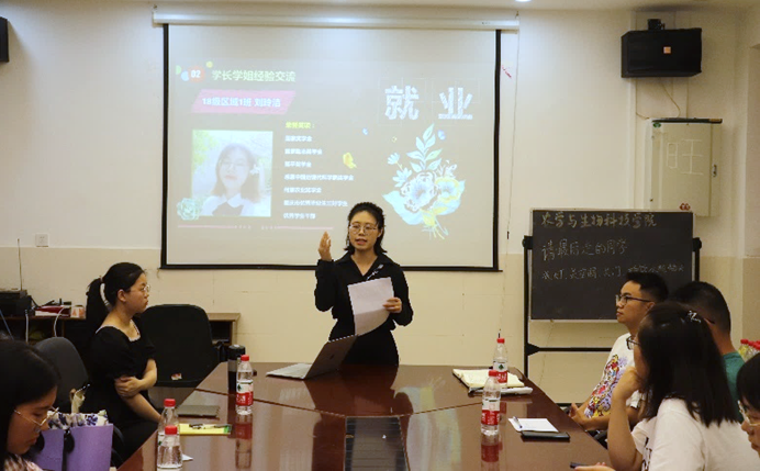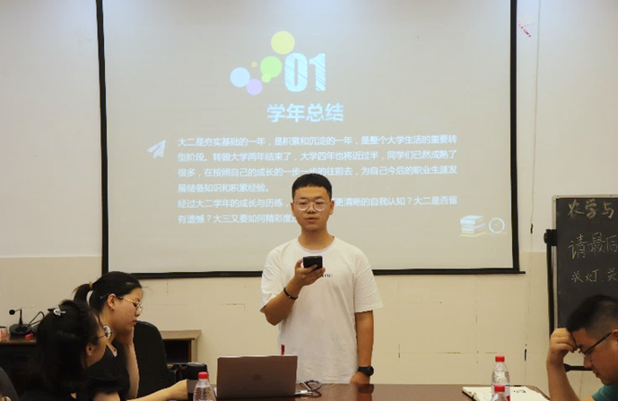 时光飞逝,流水悄然。在大二即将结束,老员工活已然过半之际,为了帮助同学们做好大三学习生活规划,同时更好地思考未来职业生涯,6月24日下午,由2020级区域一班和区域二班联合举办的“不负青春,与梦同行”交流分享主题班会拉开了帷幕。会议邀请了大三、大四年级区域专业优秀员工代表王卓雅、李欣和刘玲洁进行经验分享,2020级区域1班班主任陈琼、区域2班班主任李燕、辅导员王皓、区域系教师徐鑫以及2020级区域专业全体员工共同参加班会。会议从员工代表学年总结、优秀学长学姐经验分享、班主任及导师发言、优秀寝室代表分享和辅导员发言等六个方面展开,班会由区域1班李洁同学主持。