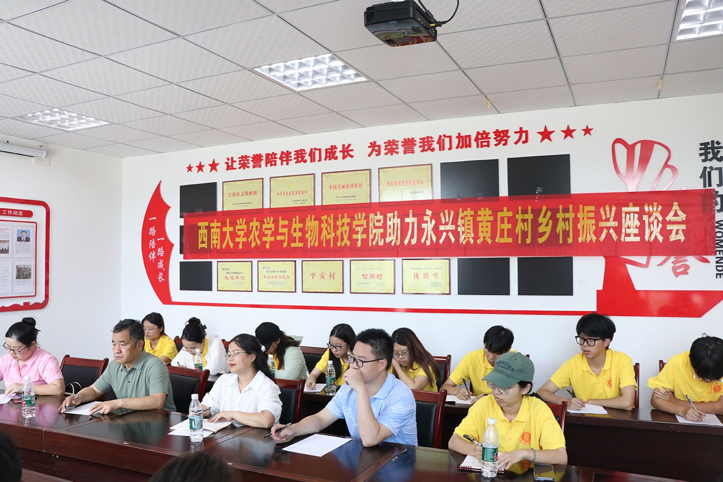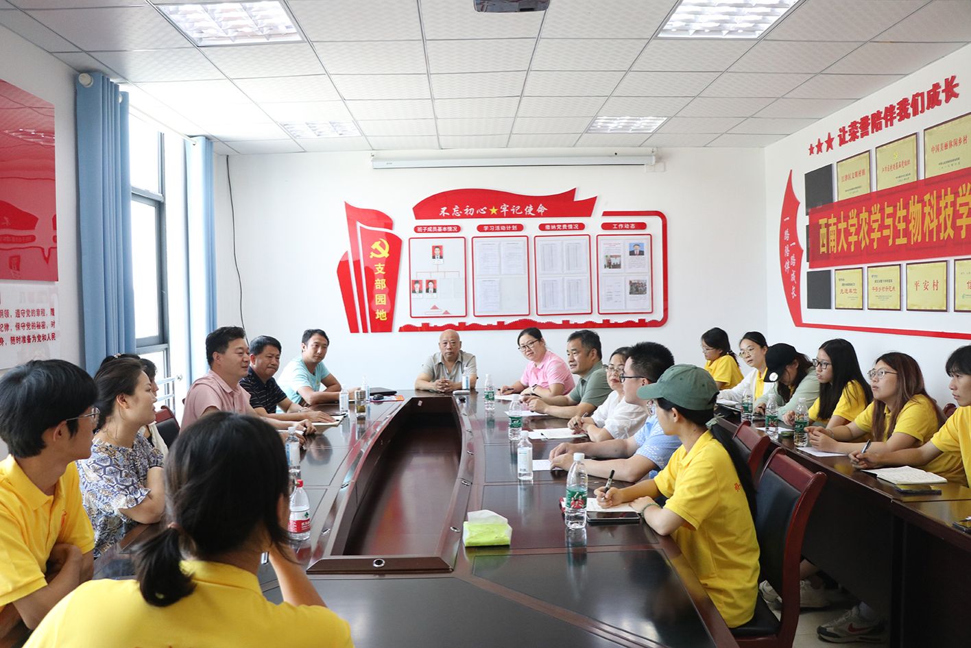 为了深入了解江津区永兴镇黄庄村在乡村振兴进程中所面临的机遇与挑战,为黄庄村乡村振兴建言献策,7月2日下午,公海gh555000aa线路检测师生实践团与黄庄村干部开展在黄庄村党群服务中心的会议室开展调研座谈会。公司党委副书记郑莉佳、团委书记许莹竹、油菜研究领域专家徐新褔、高粱研究领域专家肖前林以及实践团的同学们与黄庄村驻村第一书记喻华、永兴镇派驻黄庄村主任赵荣启、农机专业合作社负责人何锡文等基层干部面对面深入交流,共同为黄庄村的产业发展、人才振兴、乡村治理等谋划与建言。