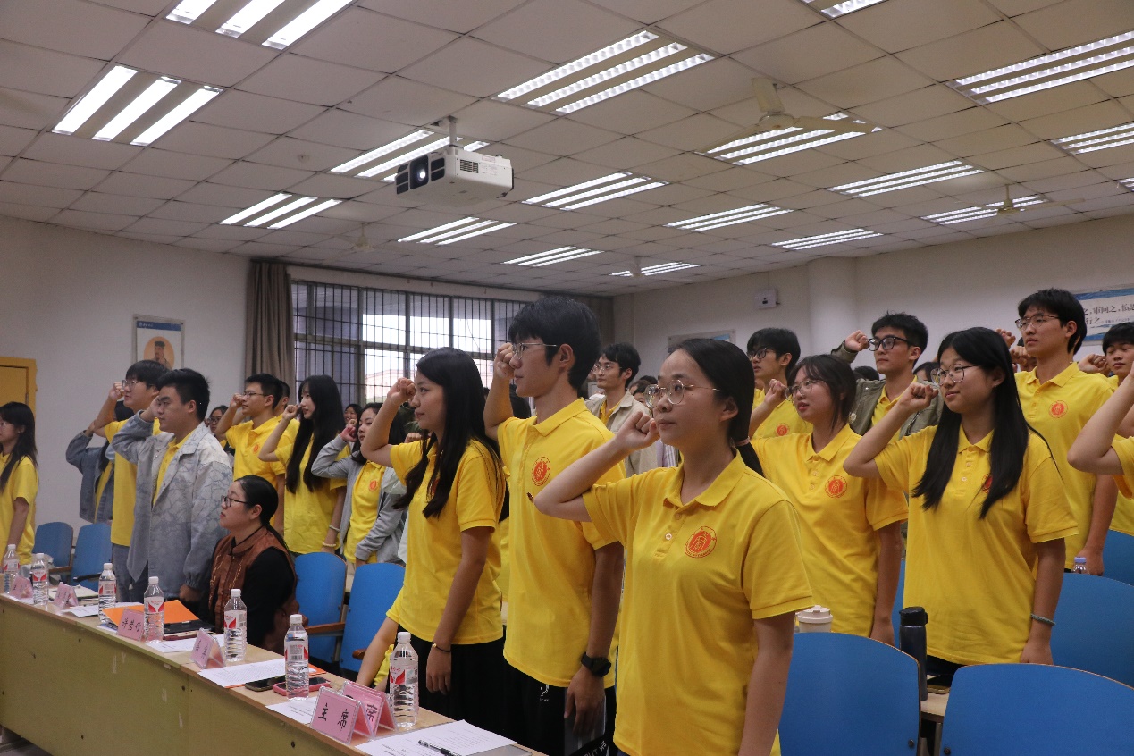 最后,工作人员郭康宇同学带领全体成员进行宣誓,大会在庄严的宣誓声中达到了高潮。全体成员在宣誓中表达了自己为员工工作贡献力量的决心和信念。随后,大会在共青团花园合影留念后圆满结束。