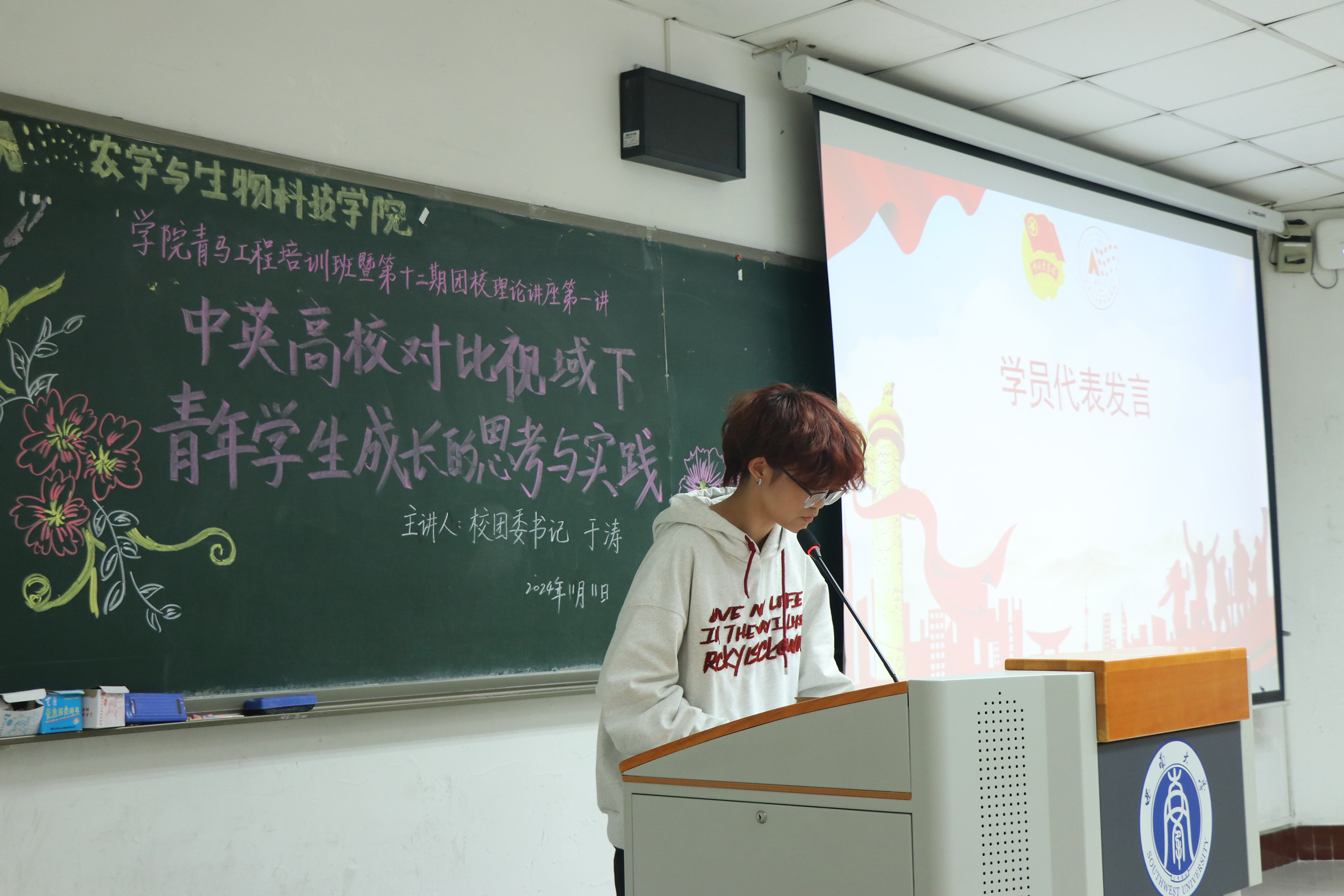 接下来,学员代表涂晨曦同学发言,她表示国家的繁荣昌盛离不开青年的努力奋斗,党始终对青年寄予厚望,作为一名共青团员,我们应时刻铭记初心与使命,用青春的臂膀扛起时代重任。团校正是我们锻炼品德意志,提高思想觉悟的课堂,带领我们学习贯彻、提升个人综合素养。她表示将以最饱满的热情、最严谨的态度、最实际的行动来完成团校课程学习,努力提高自身综合素质,努力成为员工骨干、青年先锋,在担当中历练,在尽责中成长,以实际行动践行共青团员的责任与使命。