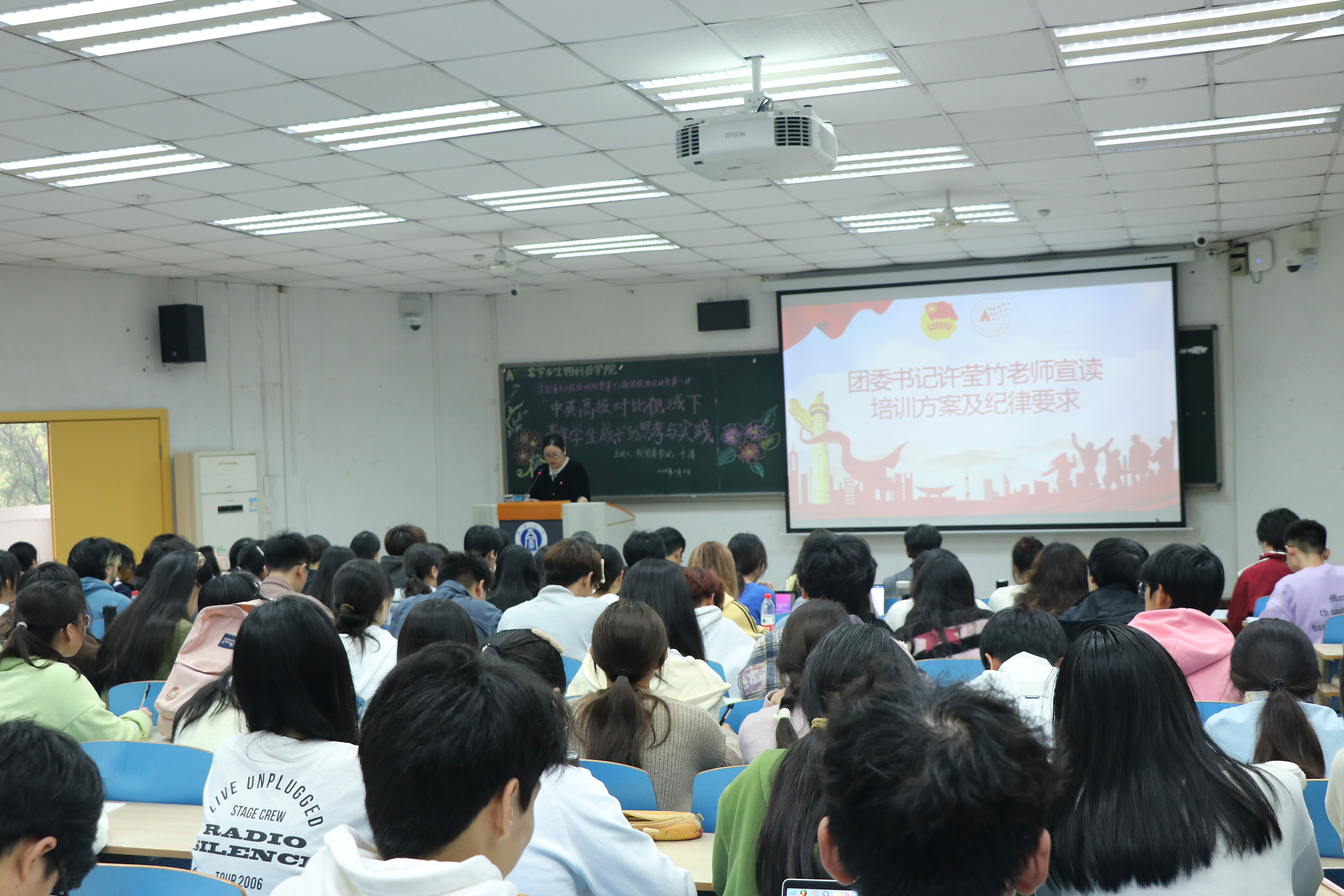 全体师生高声齐唱中华人民共和国国歌后,学院团委书记许莹竹老师宣读《“青马工程”培训班暨第十二期团校培训方案及纪律要求》,详细介绍本期培训班的主题课程设置、培训模式及时间安排等,希望学员们参加理论学习、能力提升、社会实践三个模块的学习,线上与线下双线并行,从理论到实践加深对习近平新时代中国特色社会主义思想学习理解,实现综合素质和工作能力的提升。