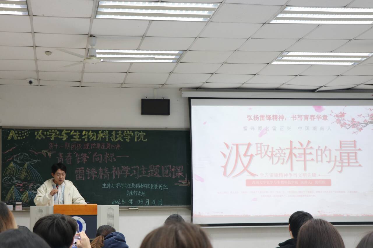 为深入贯彻习近平总书记关于弘扬雷锋精神的重要论述,深刻把握雷锋精神的时代内涵,让学雷锋在青年中蔚然成风,引领广大青年团员传承红色基因,汲取奋进力量,共青团公海gh555000aa线路检测委员会于2025年3月21日星期五在32教312教室开展了公海gh555000aa线路检测第十二期团校理论讲座第四讲。本次团校特别邀请学院团委书记许莹竹老师,带来“赓续雷锋精神,砥砺奋进力量”主题理论讲座。