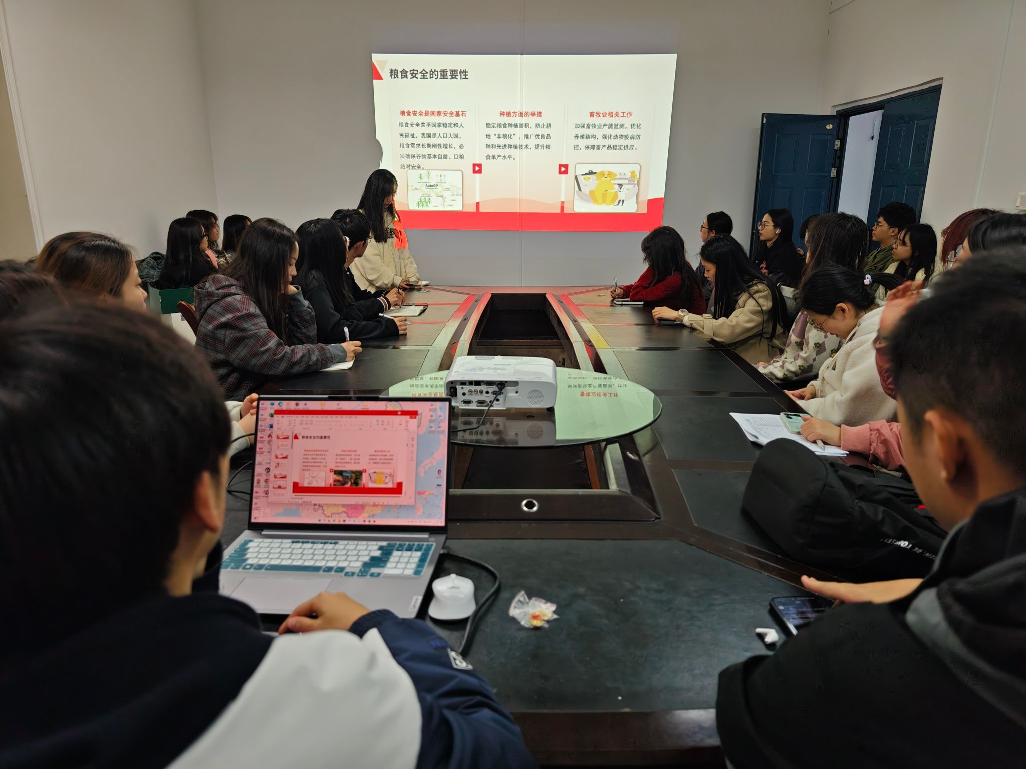 最后,员工会主席团成员石文杰同学作总结发言。他强调,我们农科学子要始终牢记“强国必先强农”的时代使命,将政治学习作为终身课题,以“三农”精神为指引,扎根农村实践、聚焦农业发展、厚植爱农情怀。