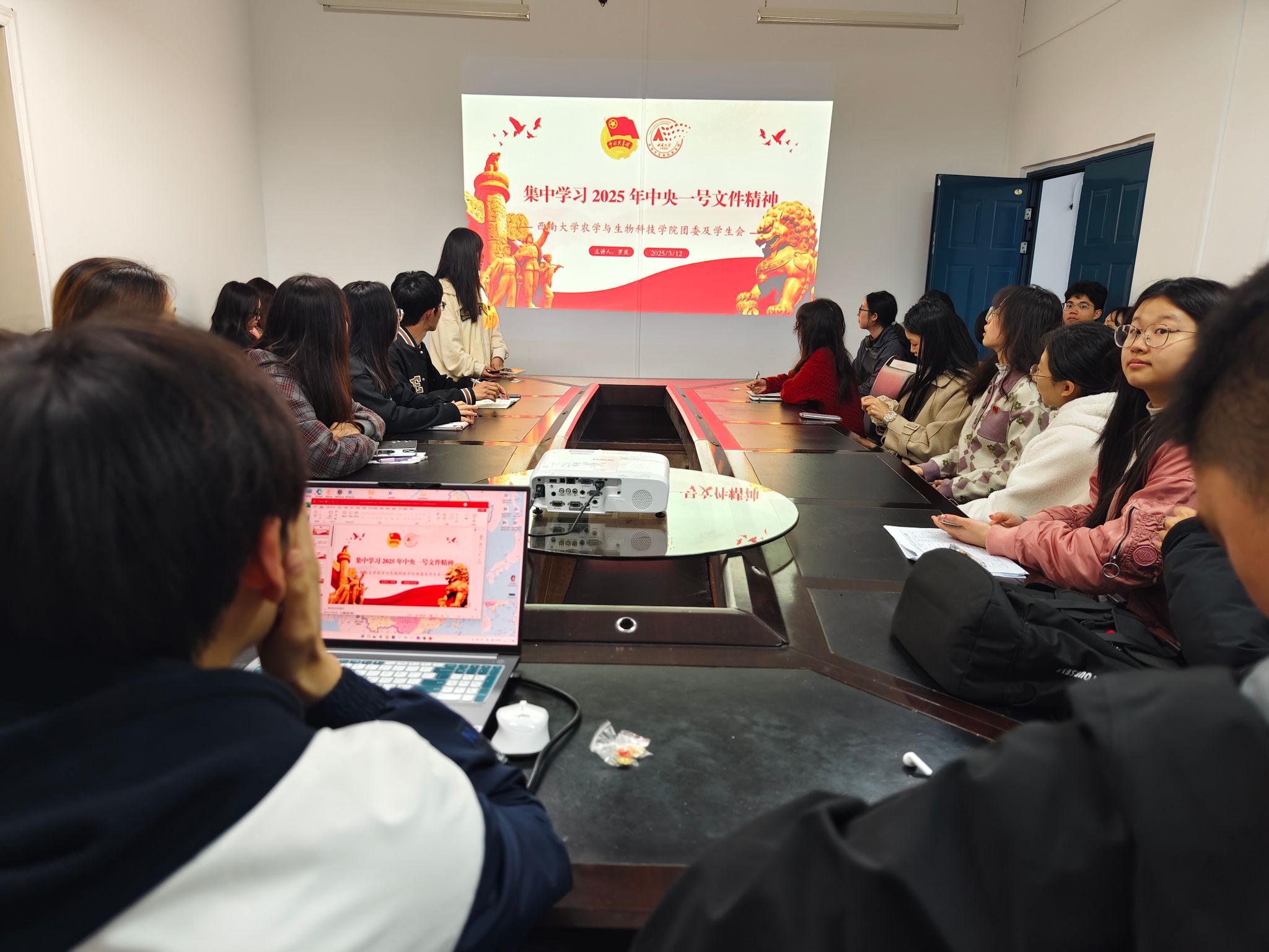 为深入学习贯彻2025年中央一号文件精神,推动新时代青年学子全面把握乡村振兴战略的核心要义,近日,学院团委及员工会在棉研楼207会议室举行专题学习沙龙。本次学习会通过"领学+分享"的联动模式开展,由学院团委办公室工作人员罗奕领学,随后各部门负责人结合工作实际,围绕文件精神内涵、青年责任担当等方面展开多层次、多维度的学习感悟交流,展现出当代老员工将理论学习转化为实践动能的思想自觉与行动自觉。