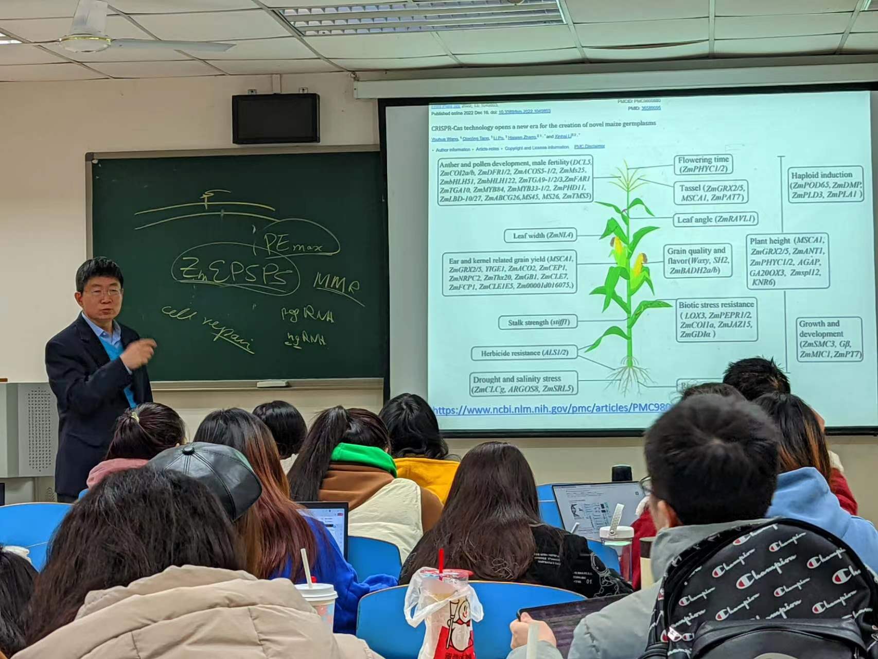 (QIU教授在32教学楼为2021级植科员工授课)