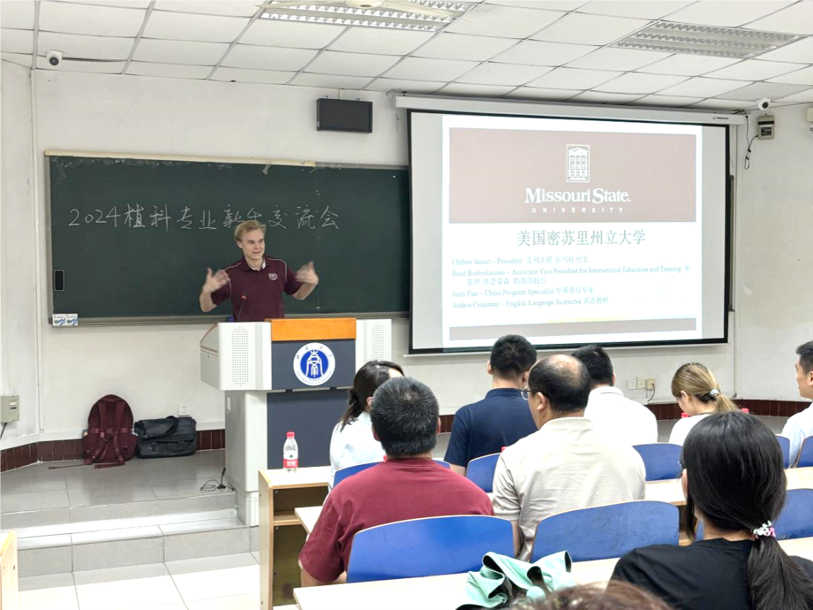 此次见面会引起学院高度重视,众多老师和全体新生积极参与。参会人员有:公司副经理张建奎;植科系的张凯、梅家琴、宋佳明、金丹、曾健晏等10多位教师;中外合作办学办公室刘志斋、张溢颖、吴雨桐老师;MSU教师代表Joshua;全体新生班主任荐红举、王凡龙、向洁和庄慧老师;以及2024级全体植科专业新生。主持人由张媞老师担任。